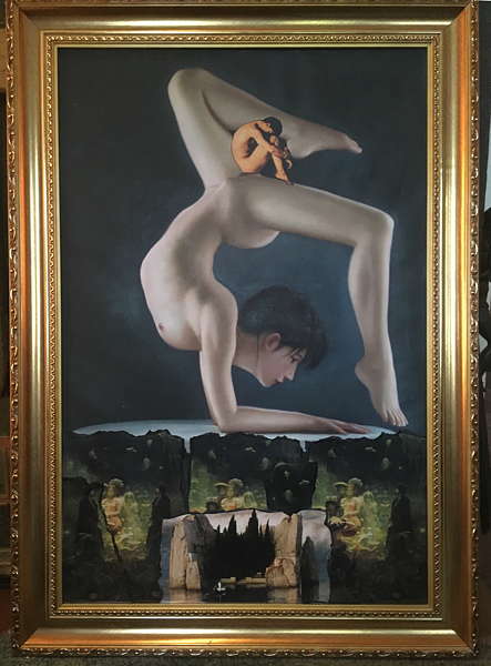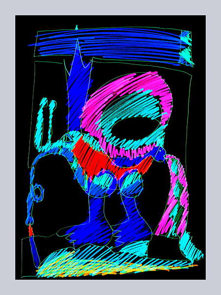 In vielen Farbtechniken. Hauptsächlich Öl/Acryl auf großformatiger Leinwand. Aquarell und Mischtechniken, Collagen, digitale Arbeiten, Grafik auf Acryl ...